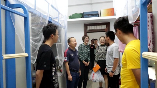 “家是什么地方的?为什么选择我们学院?在学校吃住习惯吗?生活和学习上有没有什么困难?……”学院领导对学生们嘘寒问暖,一句句贴心的问候、暖心的话语不仅让新生们感受到了财公学院大家庭的温暖,更是消除了紧张情绪,主动介绍起自己的状况和想法,宿舍内一片欢声笑语,师生热切交谈。在与新生面对面交流中,储德银介绍学院和专业相关情况,鼓励新生尽快适应大学生活,积极锻炼个人能力,团结友爱,认真投入学习,锻炼好身体,保持良好的精神状态,自律、拼搏,珍惜大学时光,追求卓越,成就自我。而对刚踏入大学校门的新生而言,学院老师深入学生宿舍看望使他们感受到家的温暖,纷纷对学院和老师的关心表示感谢。