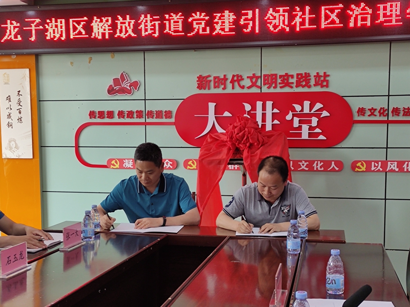 5月25日上午,我院与蚌埠市龙子湖区解放街道共建社区学院战略合作签约仪式暨社区学院揭牌仪式在解放街道建新社区举行。学院院长储德银、行政管理系主任张志胜、副主任高新宇和教师代表吴海南博士一行参加签约仪式。龙子湖区委常委、组织部长韩克标、龙子湖区组织部常务副部长李志军、解放街道党工委书记顾照春等人出席仪式。仪式由解放街道党工委副书记周鹏鹏主持。