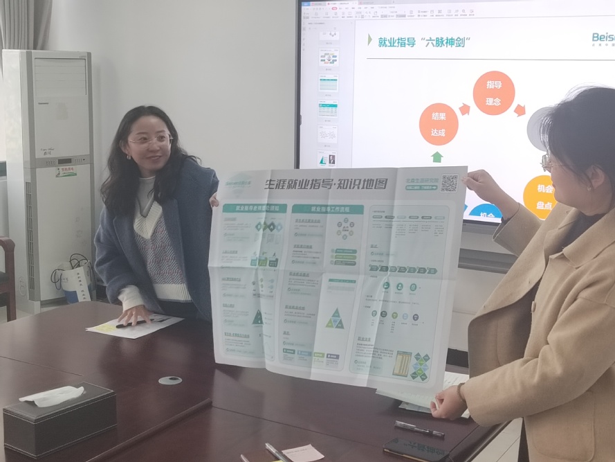 会上,学院专职辅导员王梦梦、李懿宸分别分享了在就业指导师认证培训中学习到的科学方法和先进经验,详细阐述了学生职业生涯规划与就业指导工作的最新理念和方式方法,对学生普遍存在的慢就业、缓就业心理进行剖析,提出唤醒学生求职意愿的具体方法,并特别介绍了“就业指导‘六脉神剑’”和“USP” 简历制作法则等新观点和新方法。陈先年在总结时强调,要不断更新和创新学生职业生涯规划与就业指导思路和方式,发挥思政引领和个性化咨询作用,从就业育人的角度出发,帮助学生树立正确的就业观、人才观、职业观。