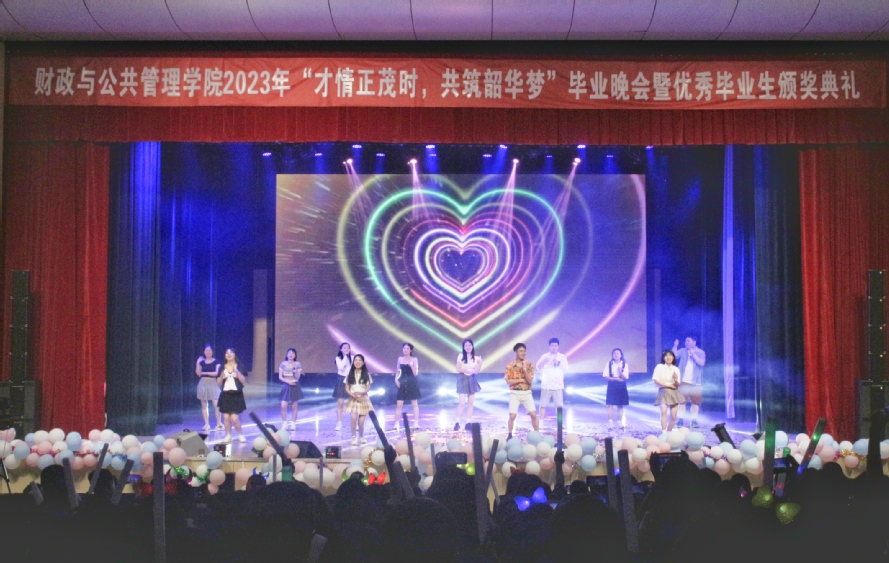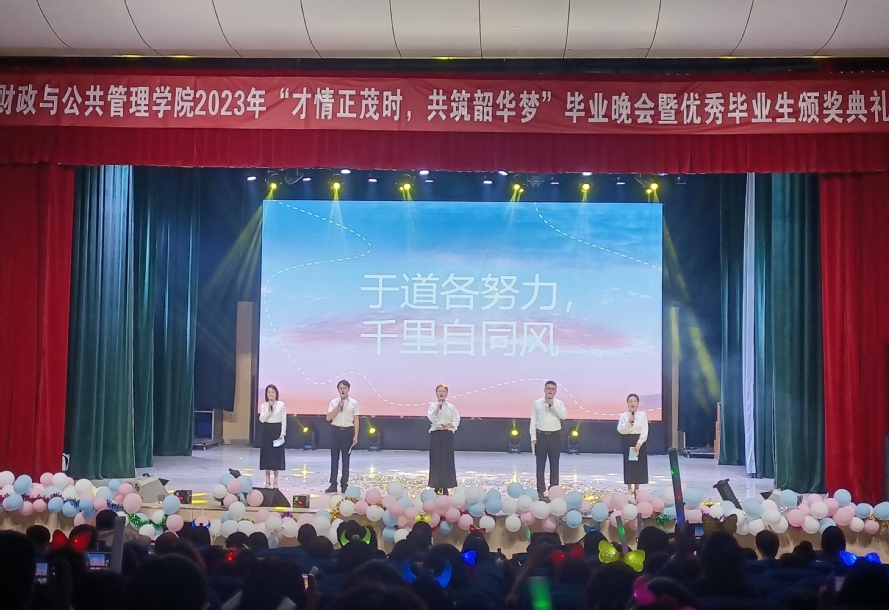 青春不散场,岁月正如歌。5月30日晚,财政与公共管理学院在艺术楼报告厅举办“才情正茂时,共筑韶华梦”2023年毕业晚会暨优秀毕业生颁奖典礼。校党委常委、副校长、财政与公共管理学院院长储德银,“安则达奖学金”捐赠者、2001级行政管理专业校友薛世琪,“接力奖助学金”捐赠班级代表、1998级财税3班董黎明、周艳,学院党政领导、各系部主任、教师代表、毕业班辅导员和2023届毕业生共同观看演出。