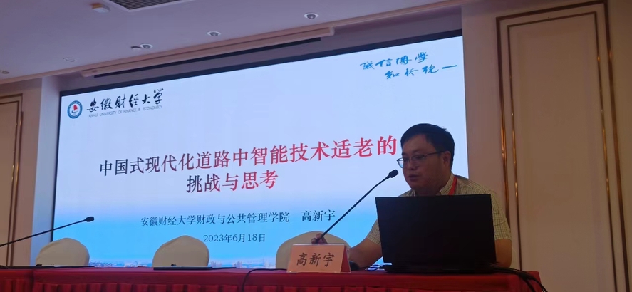 我院高新宇副教授发表了题为《中国式现代化进程中智能技术适老的挑战与思考》的主题发言,冯广刚副教授作了题为《超龄劳动者怎么办?工伤保险政策对低龄老人就业影响》的主题报告发言,李梅妮硕士生做题为《社会构建视角下农村空巢老人精神慰藉研究》分论坛发言。