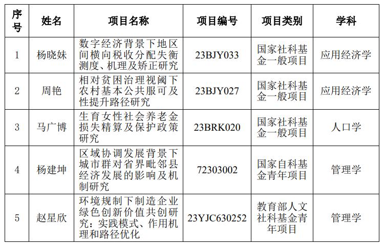 2023年财政与公共管理学院国家三类课题立项清单