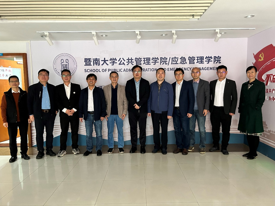 为推进党建工作、强化学科建设,提高人才培养质量,12月6日上午,学院副院长高新宇、行政管理系主任张志胜、土地资源管理系主任张勇、劳动与社会保障系主任冯广刚、行政管理系副主任刘运青一行5人赴暨南大学公共管理学院进行交流。暨南大学公共管理学院/应急管理学院党委书记廖勇、院长兼党委副书记戴胜利、院长助理胡涤非、应急管理系主任唐攀、行政管理系主任王子成、副主任陈贵梧出席座谈。