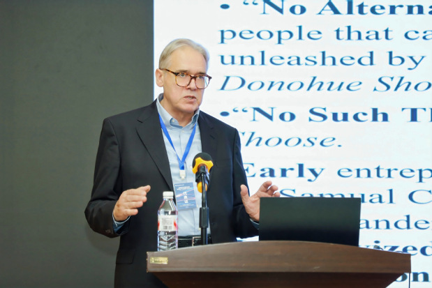 会议主旨报告分为两场,第一场由学院副院长王浩林教授主持。Research Policy主编、韩国首尔国立大学Keun Lee教授,Managerial and Decision Economics主编、美国密苏里州立大学Antony William Dnes教授分别围绕“From big businesses to startups: Entrepreneurship in East Asia”“Strategic Solution for Growth Sustainability”进行主旨发言。第二场由学院副院长高新宇教授主持。南京审计大学彭冲教授,四川大学马馨薷副教授,南京大学金刚副教授,西南财经大学贺镜宾副教授分别围绕“消费型城市与扩大内需——来自街区空间品质提升的微观证据”“Industry Spillovers in Breakthrough Innovation: Patent Textual Analysis with Language Models”“国地税合并与供应链空间重塑”“Stories That Sell: Narrative Topic Similarity and Heuristic Bidding in IPO Markets”进行发言。